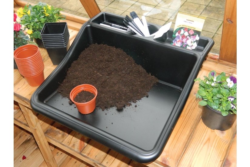 This tough compact one piece tray with it's integral shelf is an essential garden accessory. Mess & dirt are confined within the tray whilst low front allows easy access to the work space. The compact tidy tray also has many other uses around the home. A great hobby tray for Jewellery making, model making and painting etc. as well as many other uses. The tray is also waterproof and dirt proof.